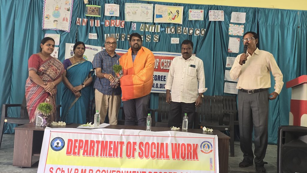 The Department of Chemistry, in association with the Dept. of Social Work, HR Club, and Inclusive Centre of the college, conducted an awareness program on anti-drug and anti-tobacco issues under the presidentship of Principal Dr. P. Nirmala Kumari on 08.08.2024. The program aimed to educate students about the ill effects of drugs and tobacco on health and the legal consequences that arise from using these substances.