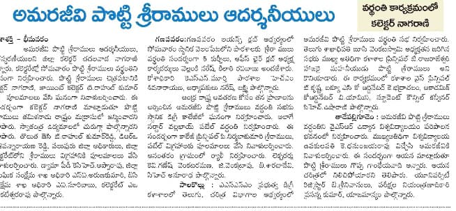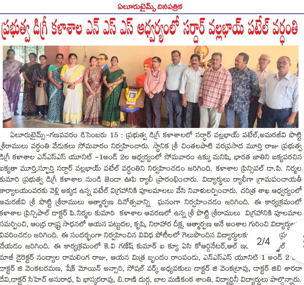 Sri Chintalapati Vara Prasada Murthy Raju Government Degree College, Ganapavaram observed the death anniversary of Amarajeevi Sri Potti Sriramulu on 15 December 2025 as “Atmarpana Day”, in accordance with the instructions issued by the Commissionerate of Collegiate Education, Andhra Pradesh.