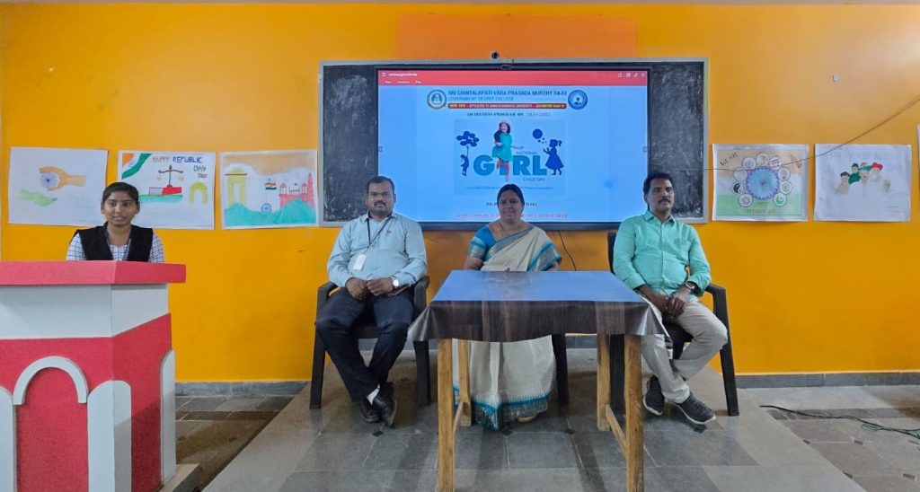 The Internal Quality Assurance Cell (IQAC) of the college organized an Awareness Program on National Girl Child Day to emphasize the importance of girls’ education, empowerment, and equal opportunities. Principal Dr. P. Nirmala Kumari presided over the event, highlighting the need to support and uplift girl children in all aspects of life. IQAC Coordinator Dr. Ch. Chaitanya, Dr. G. Venkata Ramana, Lecturer in Telugu and Senior Faculty Dr. T. Akkiraju addressed the gathering, stressing the role of education in shaping a brighter future for young girls. Faculty members and students actively participated in the session, reaffirming their commitment to gender equality and women’s empowerment.