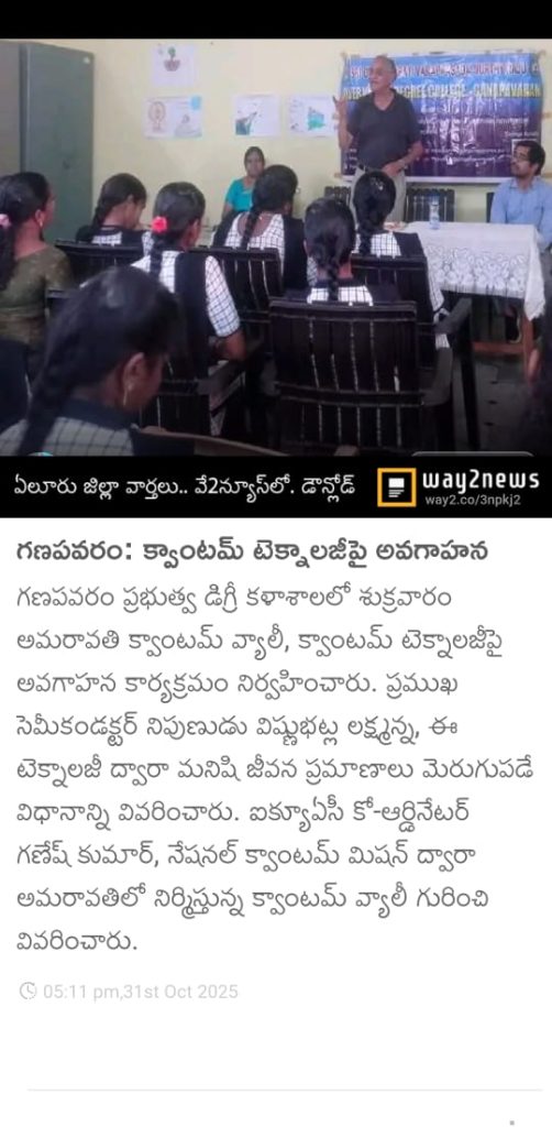 The Internal Quality Assurance Cell (IQAC) & Science Association of S.Ch.V.P.M.R. Government Degree College, Ganapavaram, organized an Awareness Programme on “Amaravati Quantum Valley and Quantum Technologies” on 31 October 2025.