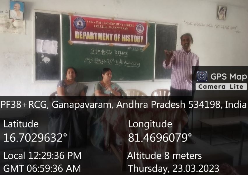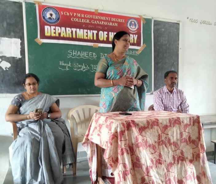 Today the Dept. of History observed Shaheed Diwas, the 92nd death anniversary of Sardar Bhagat Singh. Dr. P. Nirmala Kumari, Principal spoke about the sacrifice of Bhagat Singh for the Motherland while Mr. DVVCh. Satyanarayana, Lecturer in History explained Bhagat Singh’s role in the Indian Freedom Movement. Along with Dr. K. Swarupa Rani, Lecturer in Economics and other faculty, 46 students attended the program.