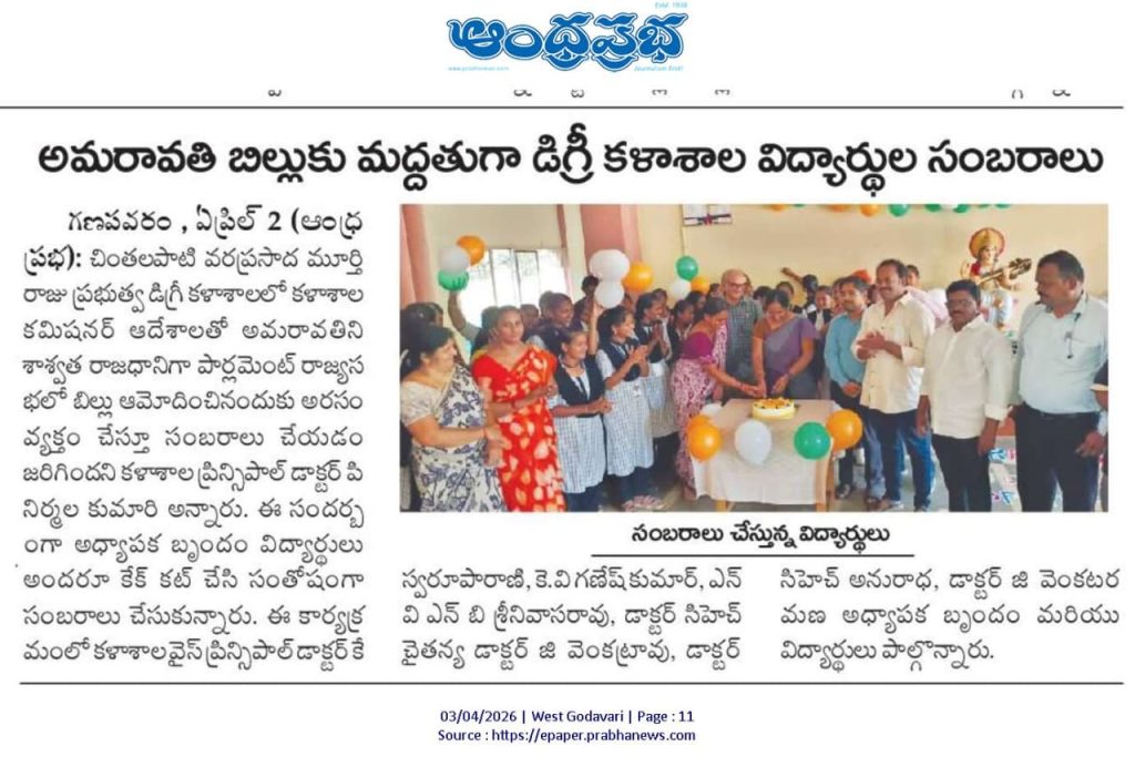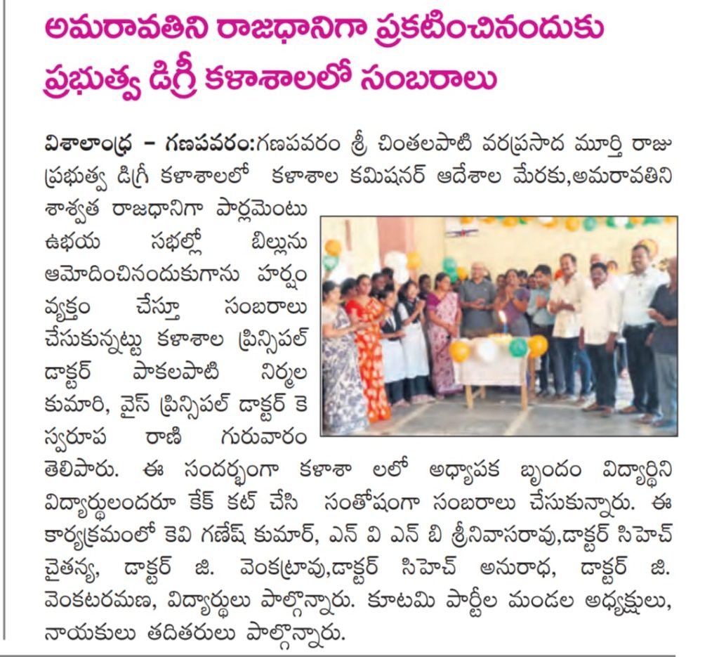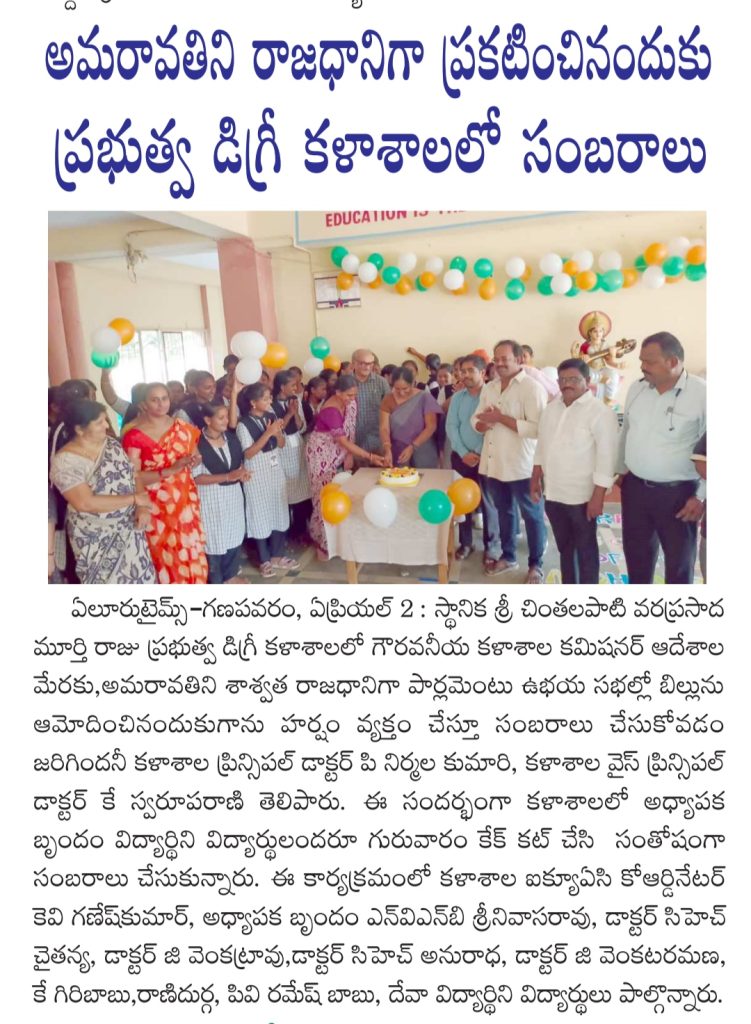The college celebrated the historic occasion of Amaravati being declared as the Capital with great enthusiasm by organizing a special celebration programme on campus. The event reflected collective pride and joy among the academic community.