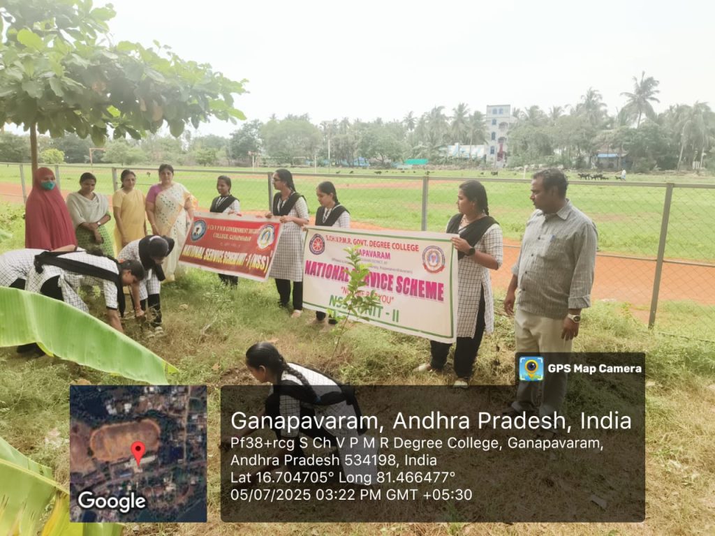 As part of the Swachh Bharat initiative, the NSS Units I & II of Government Degree College, Ganapavaram organized a Clean & Green Campus Drive on 5th July 2025. Volunteers actively participated in cleaning the college premises, removing weeds, and planting saplings to promote environmental sustainability. The activity aimed to instill a sense of responsibility among students towards maintaining cleanliness and greenery in their surroundings.