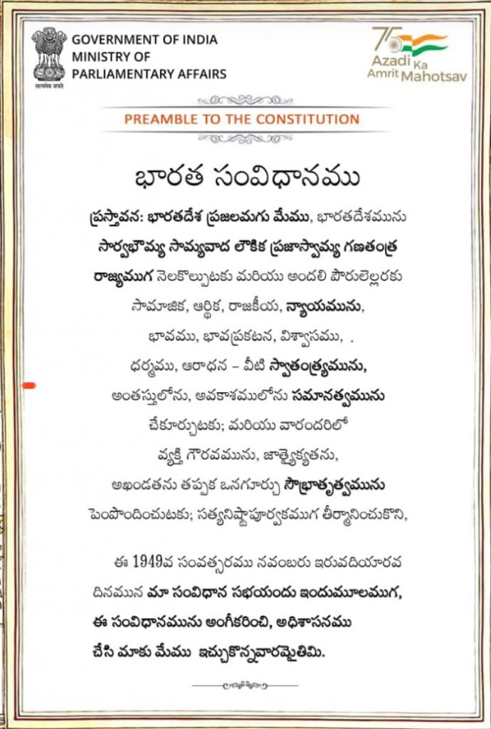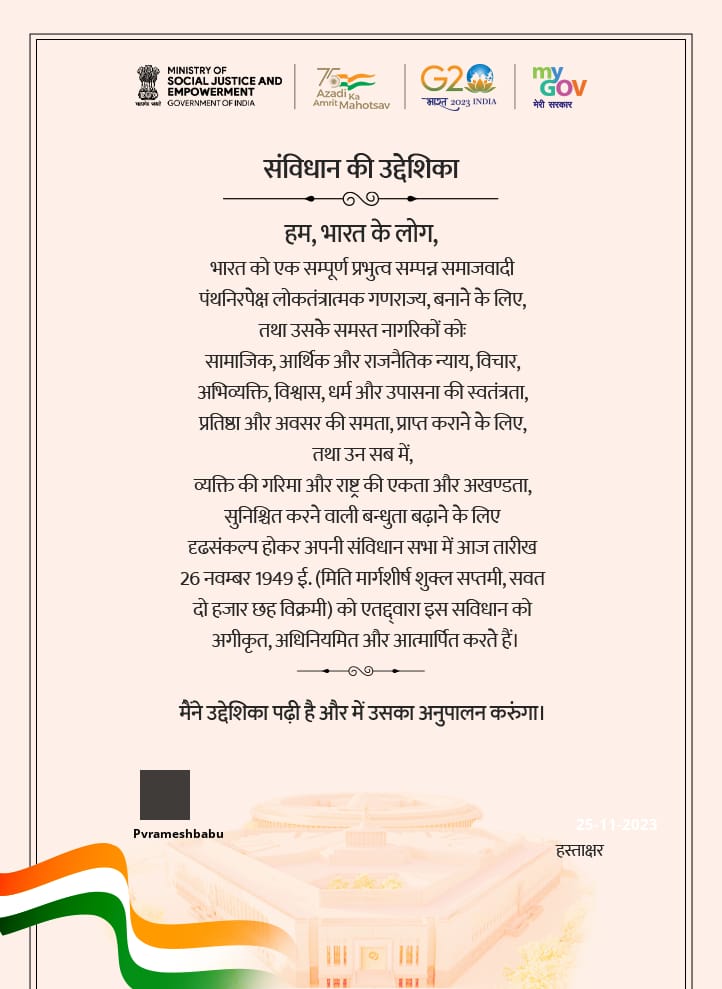 In compliance to the instructions of Commissioner of Collegiate Education, Andhra Pradesh, Constitution Day is observed in the institution on 26.11.2023. Mass reading of Preamble is done using the Public Address System to reaffirm the commitment to uphold the ideology of Indian Constitution. Staff and students also participated in the DIGITAL “Read the Preamble” initiative of the government through MyGov Portal and procured e-certificates.