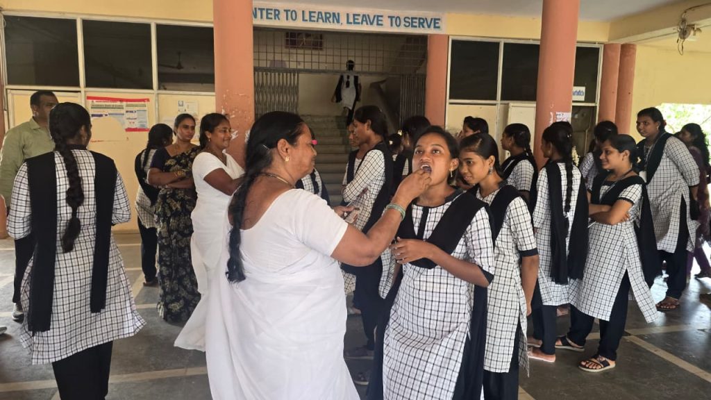On 12.08.2025, Deworming Day was observed in the college in collaboration with PHC Ganapavaram. The program, conducted by the Department of Social Work, aimed to improve students’ health and well-being through the distribution of Albendazole tablets.