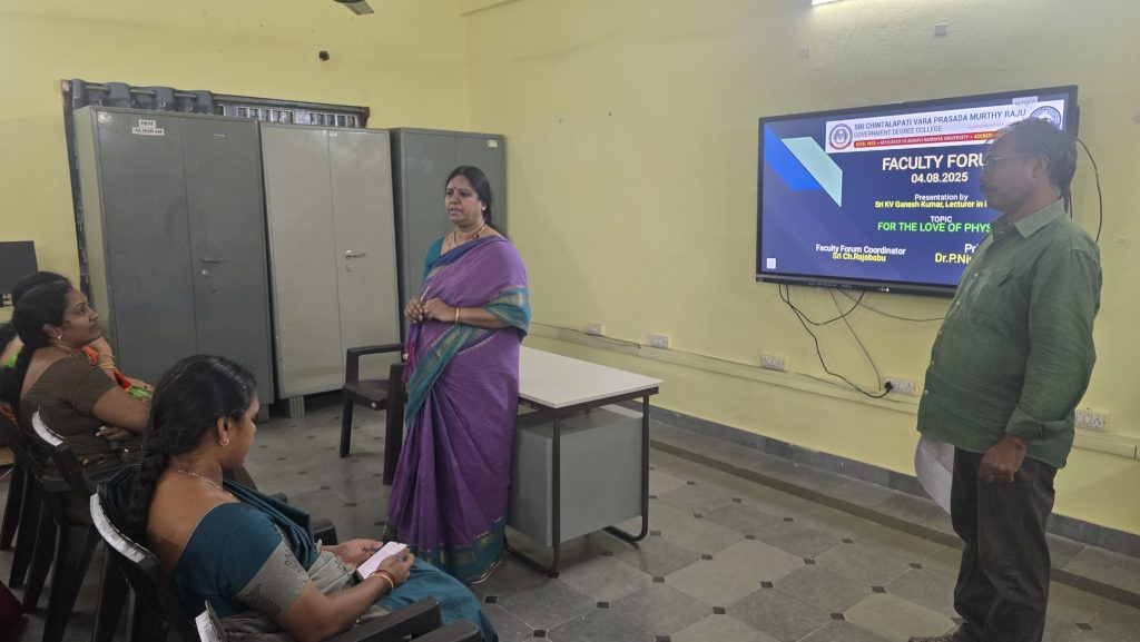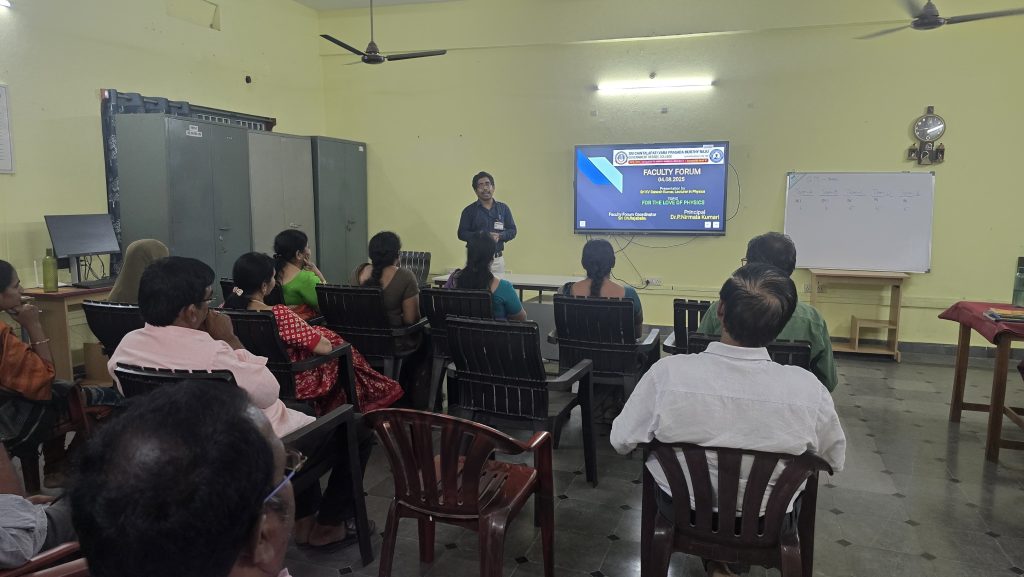 The Faculty Forum of the college conducted a session on “For the Love of Physics” on 04 August 2025, delivered by Sri K.V. Ganesh Kumar, Lecturer in Physics.