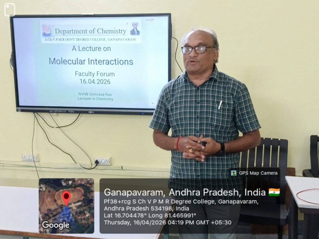 On this occasion, Sri N. V. N. B. Srinivasa Rao, Lecturer in Chemistry, delivered a lecture on the topic “Molecular Interactions”, providing valuable insights into the fundamental concepts and their applications. The session was informative and enriched the subject knowledge of the participants.