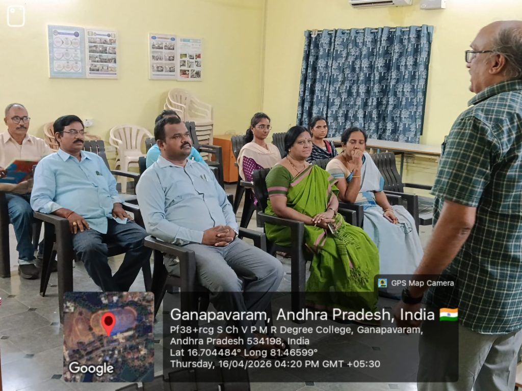 A Faculty Forum Session was organized at S.Ch.V.P.M.R. Government Degree College, Ganapavaram on 16 April 2026.