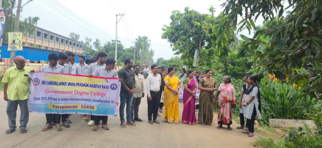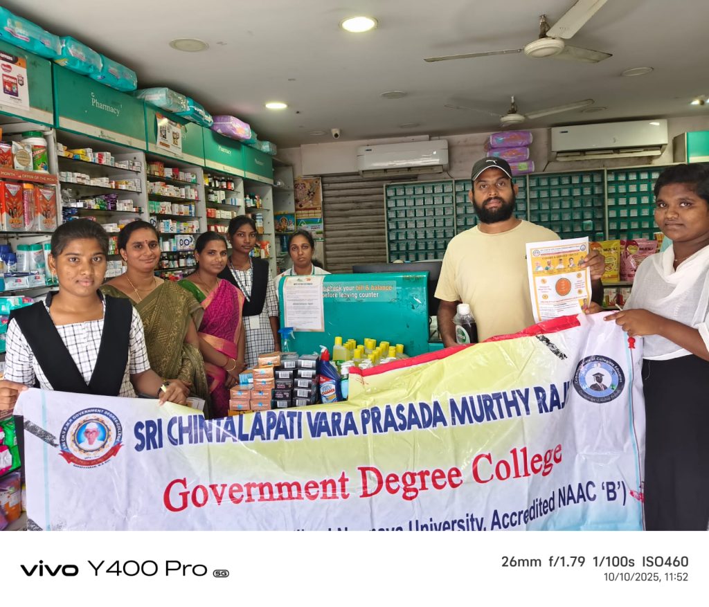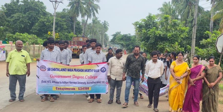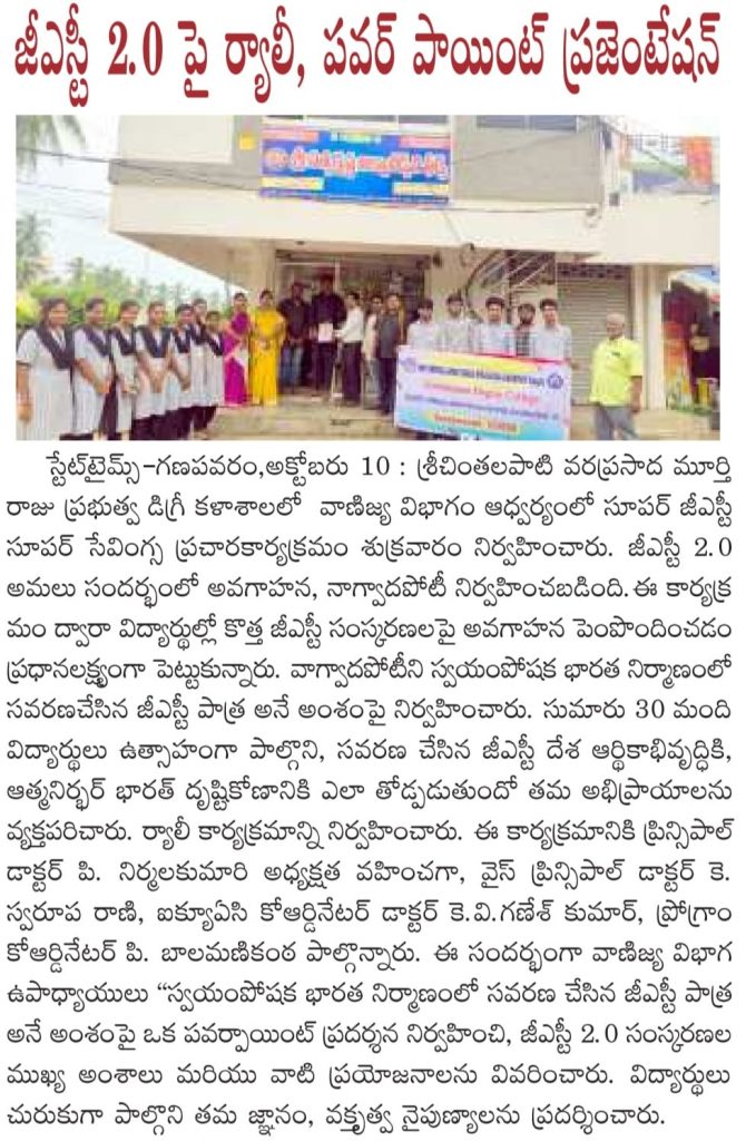 As part of the Super GST – Super Savings Campaign, S.CH.V.P.M.R. Government Degree College, Ganapavaram, organized a GST Awareness Rally on 10th October 2025 to educate local traders and the public about the benefits of GST 2.0 reforms.