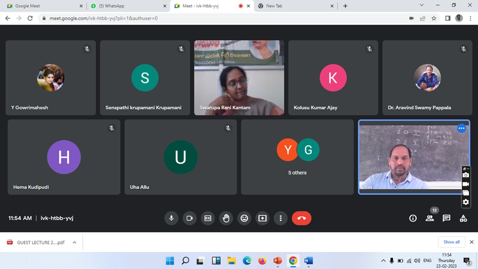 The Dept. of Economics organized an online Guest Lecture on “Financial Markets- The Broader Picture” by Sri B. Srinivasa Rao, Lecturer in Economics, CSTS GDC, Jangareddygudem on 23.02.23.