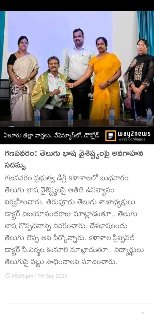 The Department of Telugu of S.CH.V.P.M.R. Government Degree College, Ganapavaram, organized a Guest Lecture on “Telugu Bhasha Vaishishtyamu” on 16th September 2025.