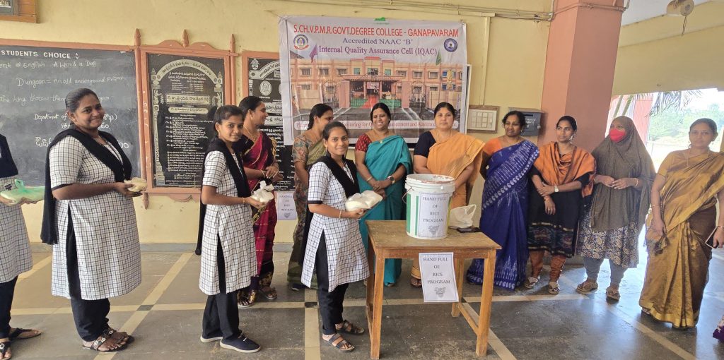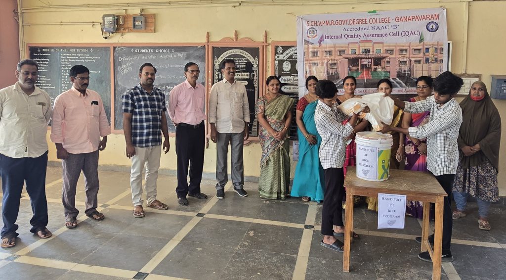 GDC Ganapavaram organized the Handful of Rice activity on February 21, 2025, as a gesture of community support and social responsibility. The initiative aimed to encourage students to contribute towards helping the underprivileged.