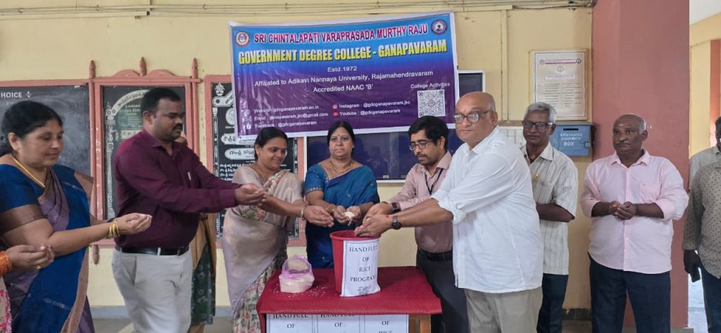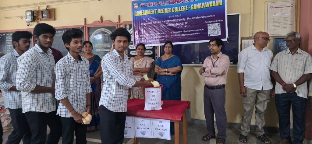 S.CH.V.P.M.R. Government Degree College, Ganapavaram organized a “Handful of Rice” programme on 23rd October 2025. The initiative aimed to support underprivileged families and promote social responsibility among students.