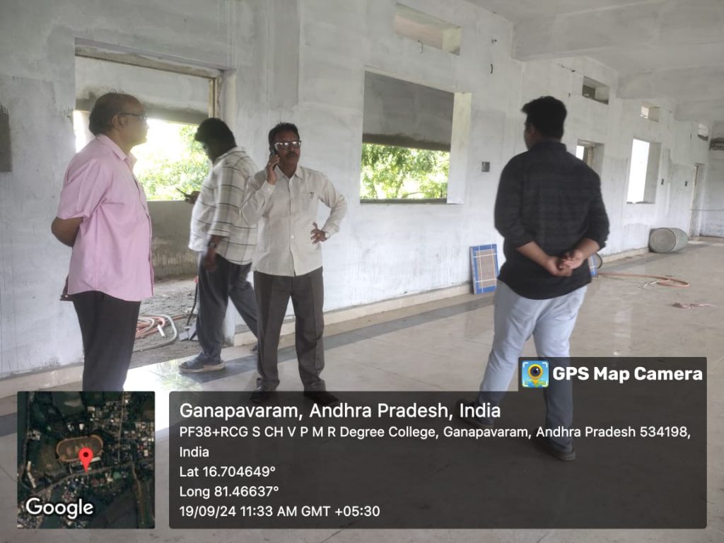 A visit was conducted at GDC Ganapavaram by the Executive Engineer (EE), Assistant Engineer (AE), and a Contractor to assess the progress of the RUSA civil works on campus. They were accompanied by Sri NVNB Srinivasarao, RUSA Coordinator provided insights and updates on the project’s status. The team reviewed various aspects of the ongoing construction and ensured that the work aligns with the guidelines and timelines set forth by the RUSA initiative. Their visit reflects the commitment to enhancing infrastructure and facilities at the college to better serve the educational needs of the students.