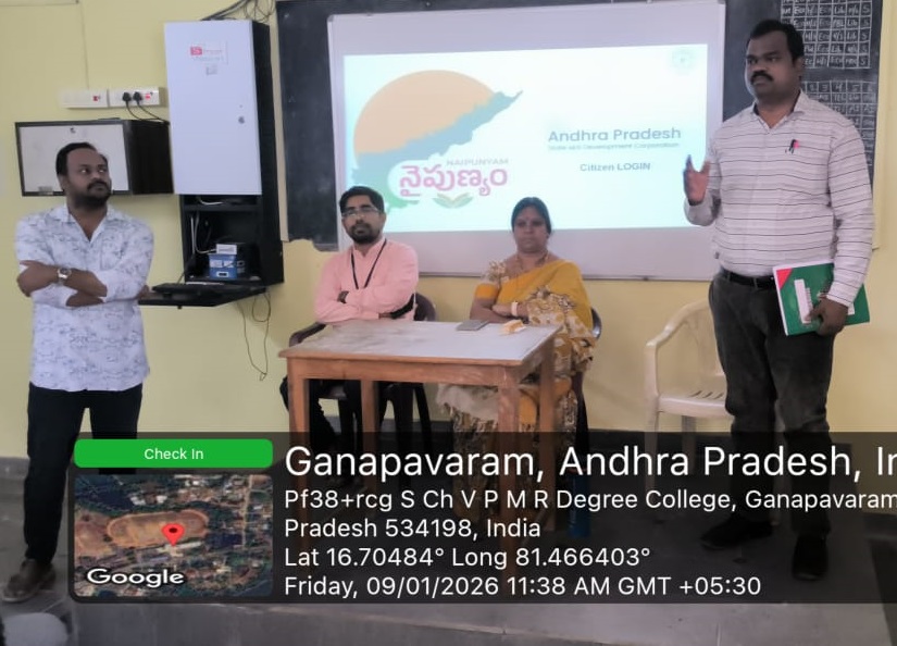 Sri Chintalapati Vara Prasada Murthy Raju Government Degree College, Ganapavaram conducted a Naipunyam Awareness Programme and AI Interview Preparation Session on 09 January 2026 for Final Year (VI Semester) students, with the objective of enhancing employability skills and preparing students for AI-based interviews.