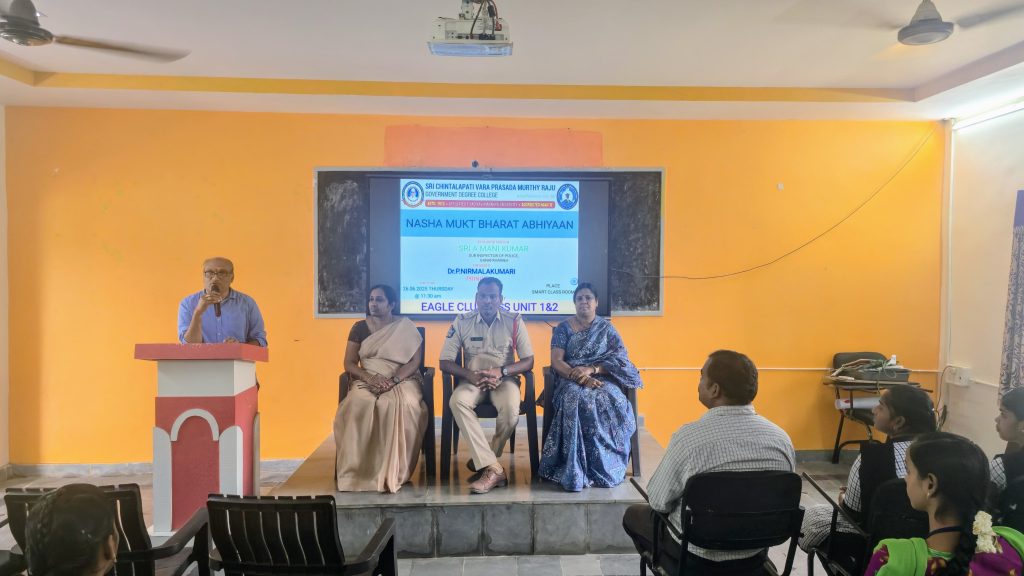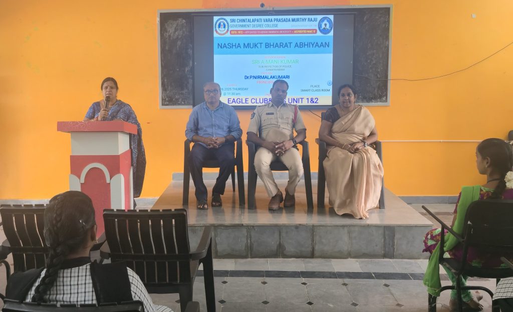Sub-Inspector Sri A. Manikumar, Ganapavaram Police Station, attended as the Chief Guest and delivered an impactful address on the legal and health consequences of drug use, referring to provisions of the NDPS Act. He urged students to stay away from harmful substances and choose a path of discipline and awareness.