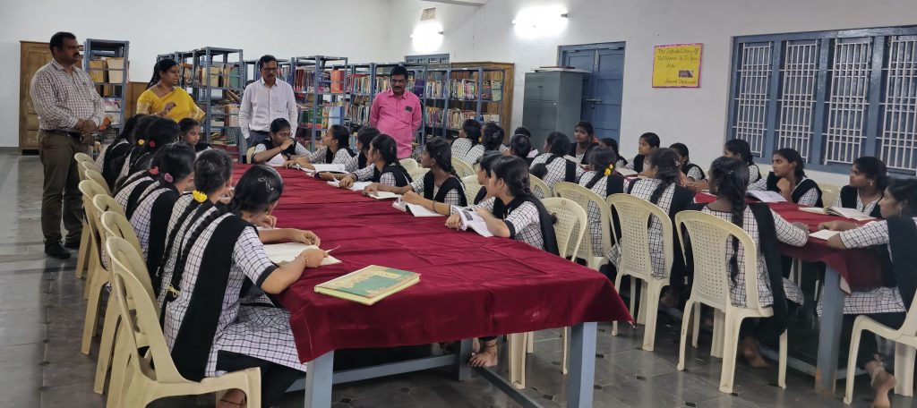 Department of Library and NSS Units of the college celebrated National Library Week from November 11 to November 16, 2024, with a series of activities aimed at promoting the importance of libraries and reading habits among students. Principal Dr. P. Nirmala Kumari highlighted the significance of libraries in shaping academic excellence and personal development. Faculty members and students are actively participating to make the event a grand success. College students also visited the branch library in Ganapavaram.