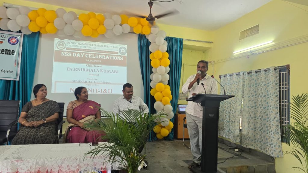 The program was coordinated by Dr. G. Venkata Ramana, NSS Unit–I Programme Officer, and Sri Shaik Ansari, NSS Unit–II Programme Officer, with the support of faculty and student volunteers. Cultural activities, speeches, and awareness talks were part of the celebration, and winners of NSS-related competitions were felicitated.