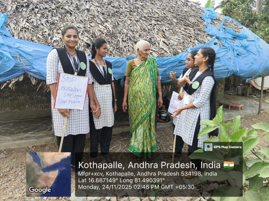 Under the guidance of NSS Programme Officer Dr. G. Venkata Ramana, NSS volunteers visited households in the village and created awareness among the residents about common symptoms, preventive measures, importance of sanitation, mosquito control, safe drinking water, and early medical attention.