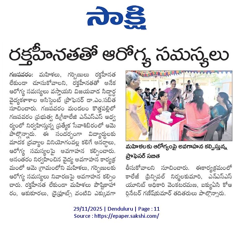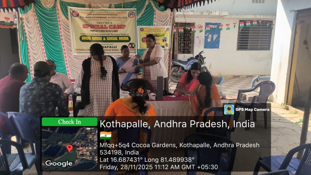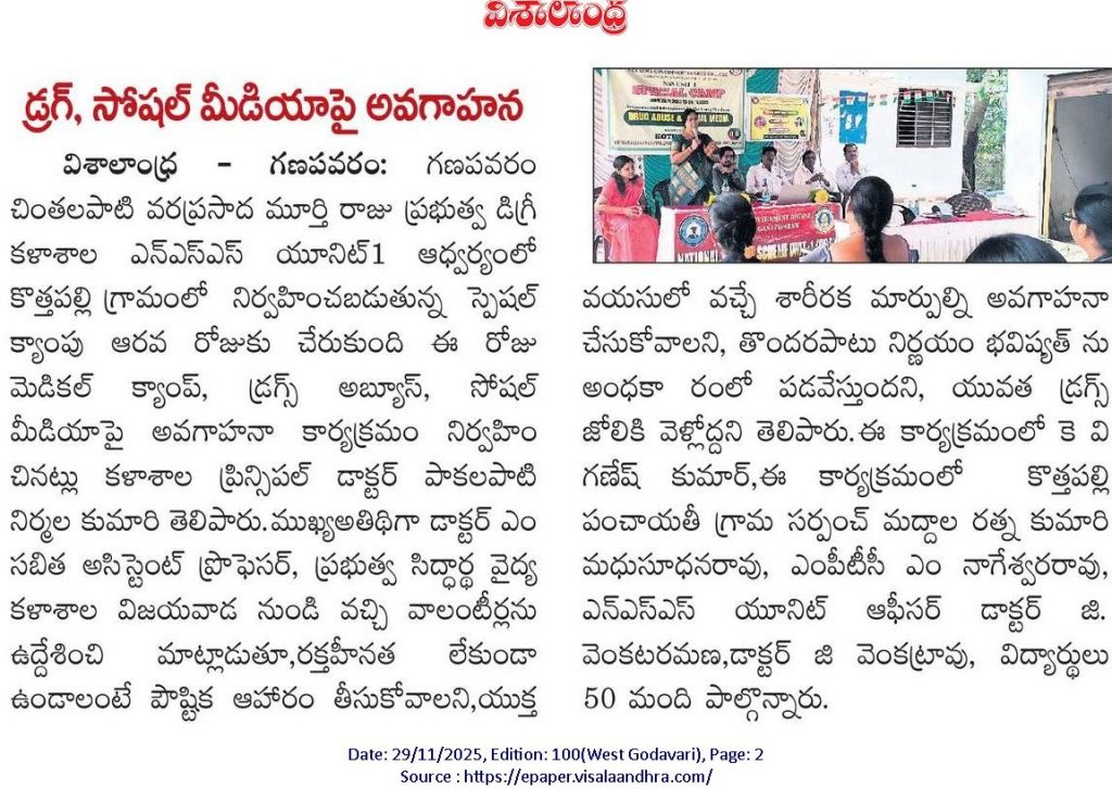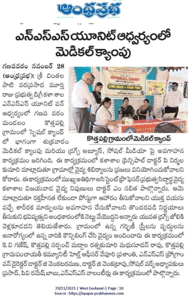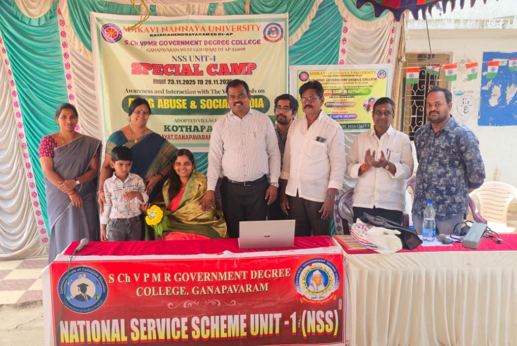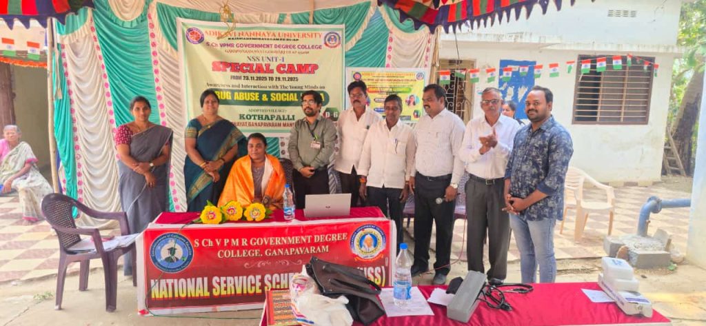 The NSS Unit–I of S.Ch.V.P.M.R. Government Degree College, Ganapavaram continued the 7-Day NSS Special Camp at Kottapalli Village on 29 November 2025 with the participation of 50 NSS Student Volunteers. The camp is being conducted under the guidance of NSS Programme Officer Dr. G. Venkata Ramana.