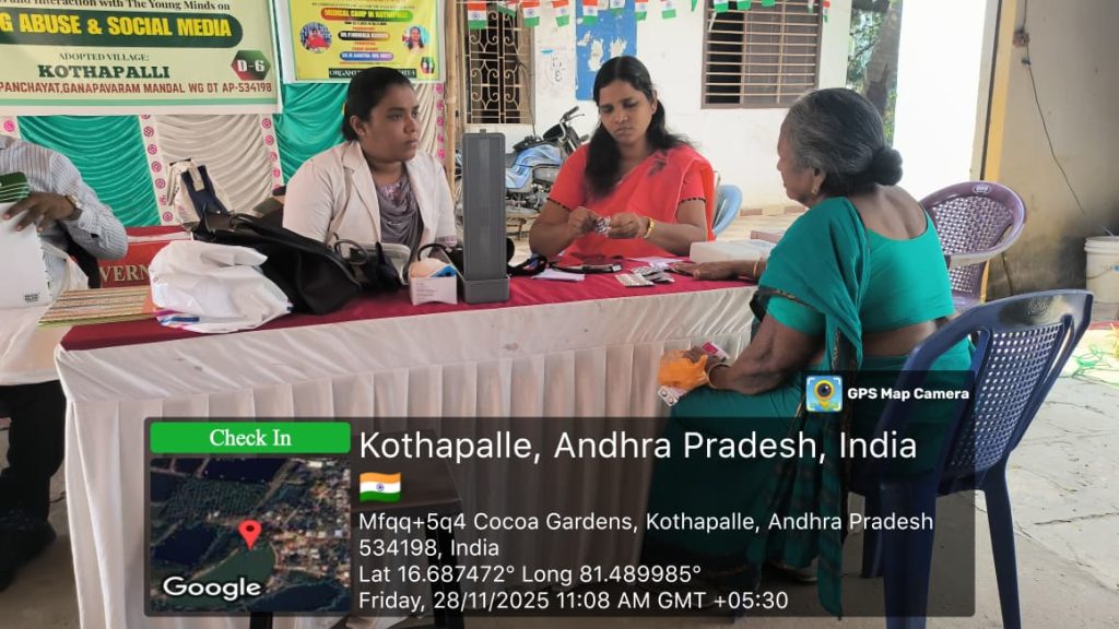 Volunteers visited households in Kottapalli and interacted with villagers, promoting awareness on hygiene, healthy habits, and safe digital behaviour among youth. They encouraged villagers to utilize the medical services provided through the camp.