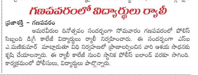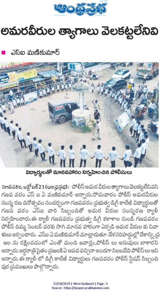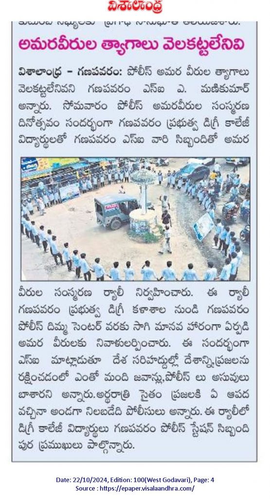 On October 21, 2024, students from GDC Ganapavaram participated in a rally and Manava Haram to honor Police Commemoration Day. This significant occasion recognizes the sacrifices made by police personnel in service of the nation.