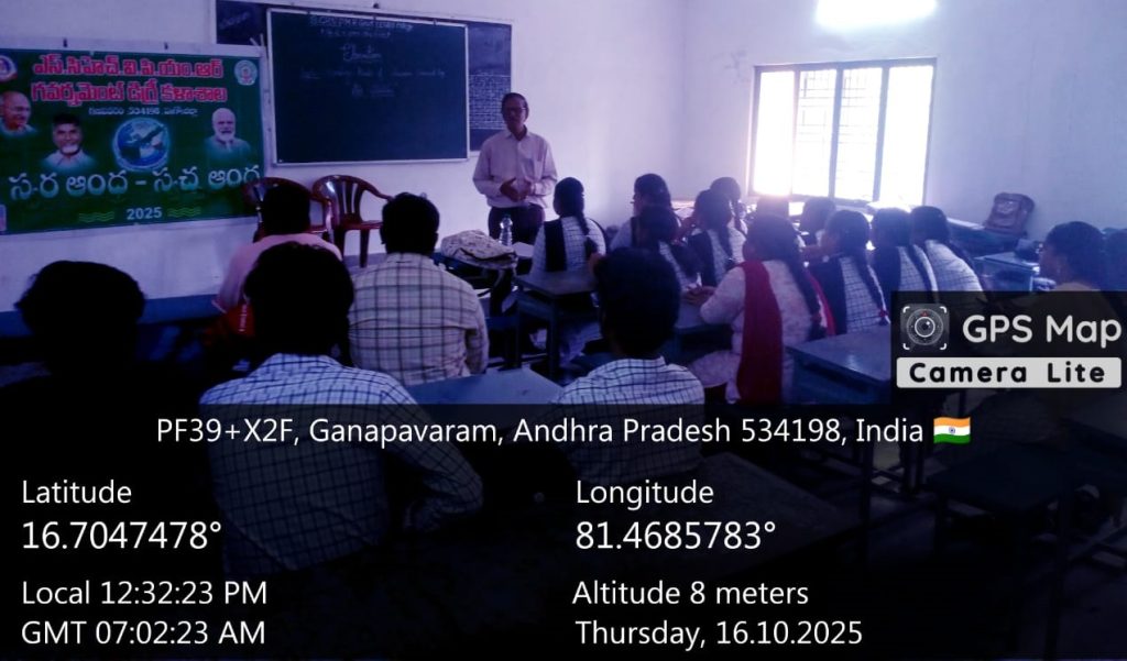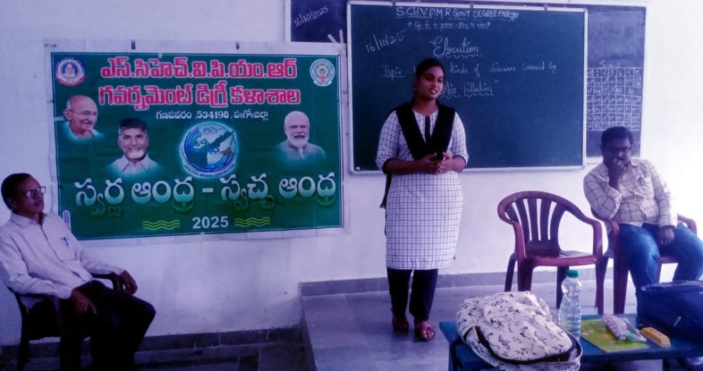 In line with the directions of the Commissionerate of Collegiate Education, Andhra Pradesh, and under the Swarna Andhra Swachha Andhra (SASA) initiative, S.CH.V.P.M.R. Government Degree College, Ganapavaram, observed the monthly theme “Clean Air” during October 2025.