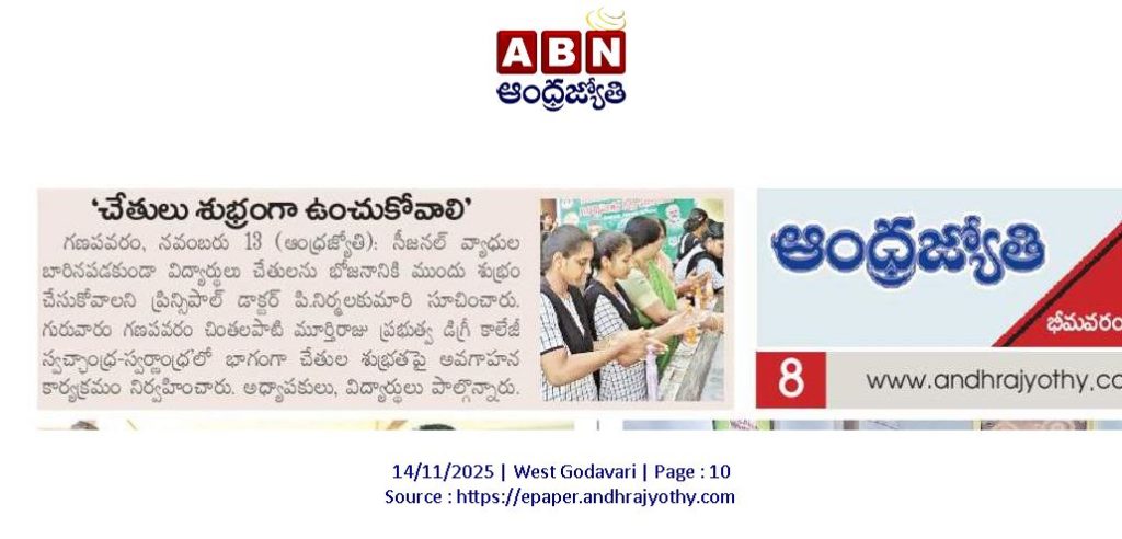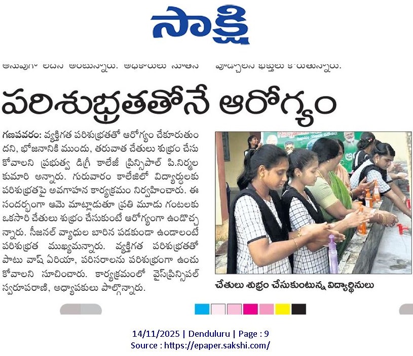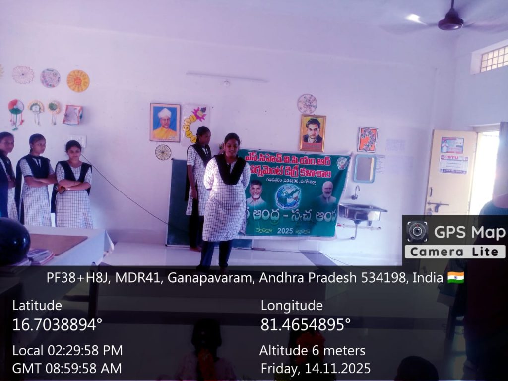 In alignment with the Swarna Andhra Swachha Andhra (SASA) circular and the directive to observe the Third Saturday as a Health & Hygiene Awareness Day, Sri Chintalapudi Varaprasada Murthy Raju Government Degree College, Ganapavaram organized a series of hygiene-focused activities on 13th, 14th & 15th November 2025.