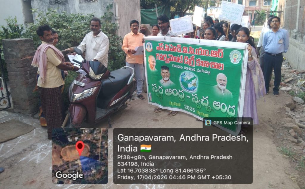 In accordance with the Swarna Andhra – Swachha Andhra (SASA) Circular, S.Ch.V.P.M.R. Government Degree College, Ganapavaram organized a series of activities on 18 April 2026 under the theme “Water Positive Andhra” as part of the programme conducted on the third Saturday of the month.