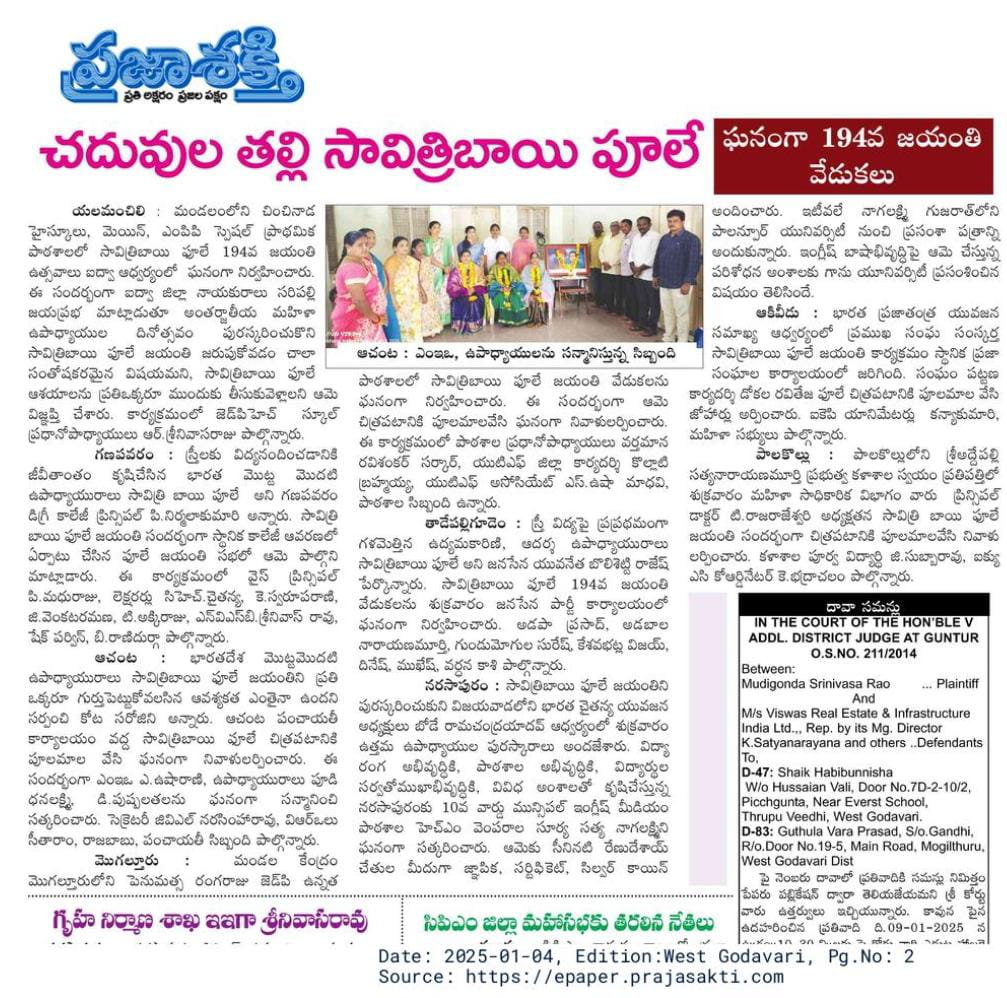 Savitribai Phule’s 194th Birth Anniversary-03.01.2025