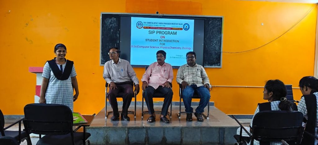 As part of the Student Induction Programme (SIP) – Day 7, a self-introduction session was organized at S.CH.V.P.M.R. Government Degree College, Ganapavaram, on 16th October 2025. Each newly admitted student introduced themselves and shared a few details with peers and faculty, fostering a friendly atmosphere and helping everyone connect.