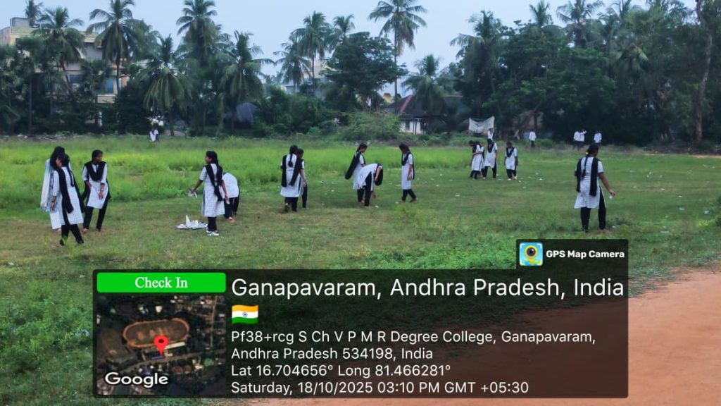 On 18th October 2025, as part of the Student Induction Programme, a session on “Clean and Green” was organized at S.CH.V.P.M.R. Government Degree College, Ganapavaram. The programme emphasized the importance of maintaining a clean, eco-friendly campus and inculcating environmental responsibility among the students.