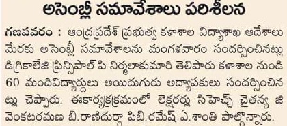 “A Day in Democracy: Reflections from the Assembly Visit” by Dr.G.Venkata Ramana, Lecturer in Telugu