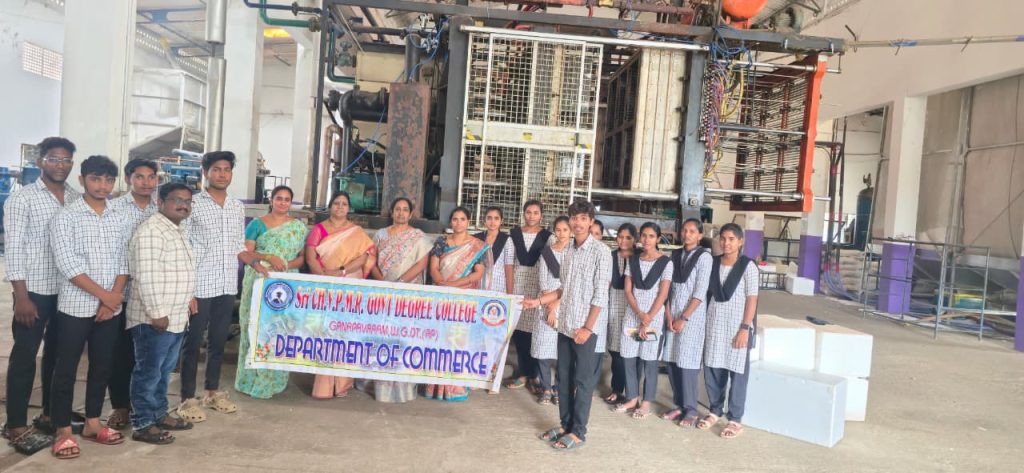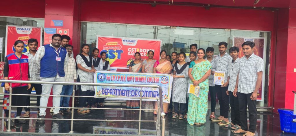 As part of the Super GST – Super Savings Campaign, the Department of Commerce of S.CH.V.P.M.R. Government Degree College, Ganapavaram, organized industry visits to Virat Polymers and Reliance Smart Point in Ganapavaram, on 14th October 2025. The visit aimed to provide students with practical exposure to GST implementation and billing mechanisms in real business environments.