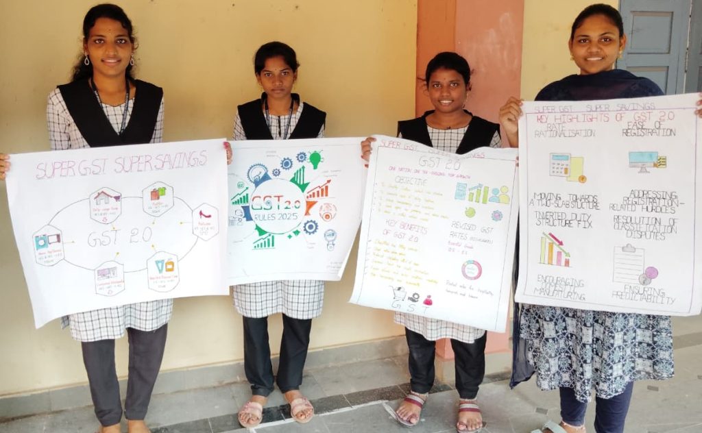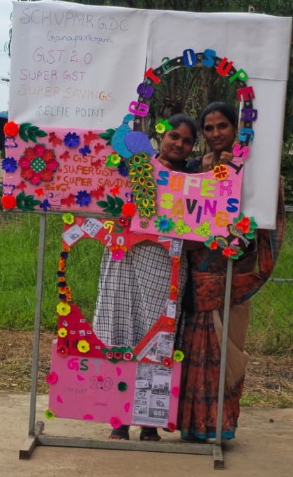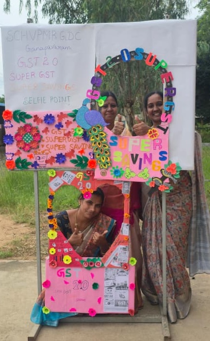 As part of the ongoing Super GST – Super Savings Campaign, the Department of Commerce of S.CH.V.P.M.R. Government Degree College, Ganapavaram, organized Selfie Point and Poster Presentation activities on 13th October 2025 to enhance student engagement and awareness of GST 2.0 reforms.