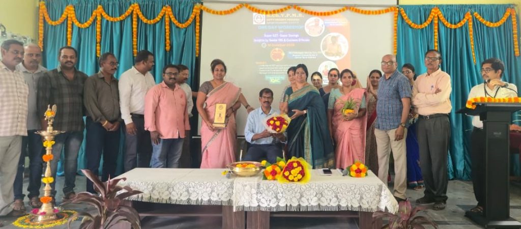 The Resource Person, Sri M. Nageswara Rao, Superintendent, Central GST Department, Vijayawada, and NACIN Trainer, delivered an informative session on the technical aspects of GST 2.0, classification of goods and services, and the practical benefits of the new rate adjustments for common citizens.