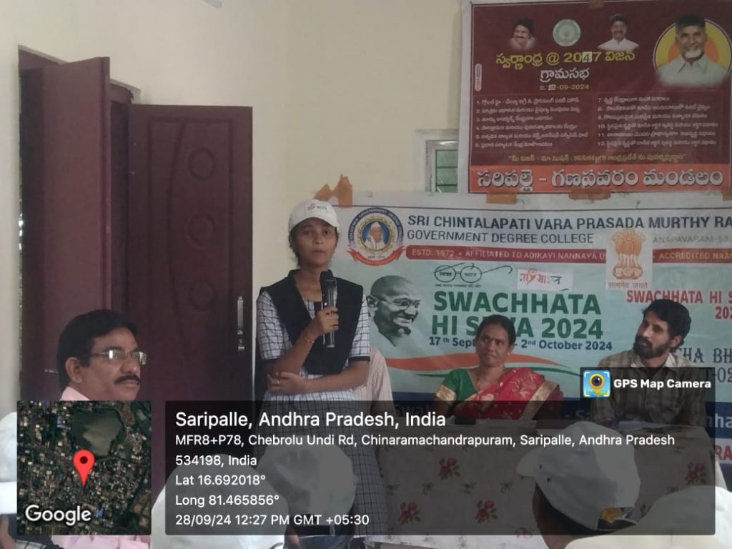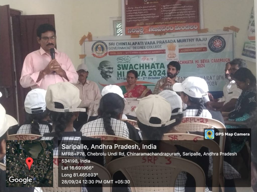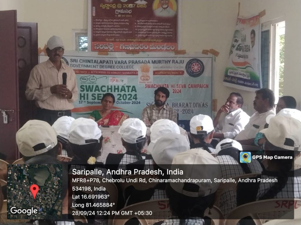 In line with the circular issued by the University Grants Commission (UGC), the NSS Unit I of the college under the guidance of NSS Officer Dr. G. Venkata Ramana, planned to organize the “Swachhata Hi Seva Campaign-2024” from September 17, 2024, to October 2, 2024. This national initiative aimed to raise awareness about cleanliness, hygiene, and sanitation as part of the Swachh Bharat Abhiyan.