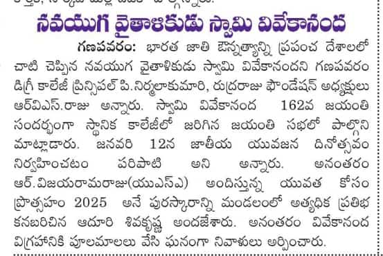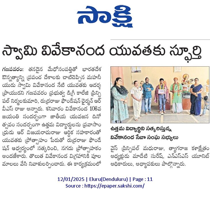 The program was organized by the NSS Units of the college under the guidance of Sri P. Bhaskararao and Dr. G. Venkata Ramana, NSS Program Officers. Dr. Ch. Chaitanya, IQAC Coordinator, and Dr. T. Akkiraju, Senior Faculty, also addressed the gathering, emphasizing Swami Vivekananda’s contributions to youth empowerment, education, and nation-building.