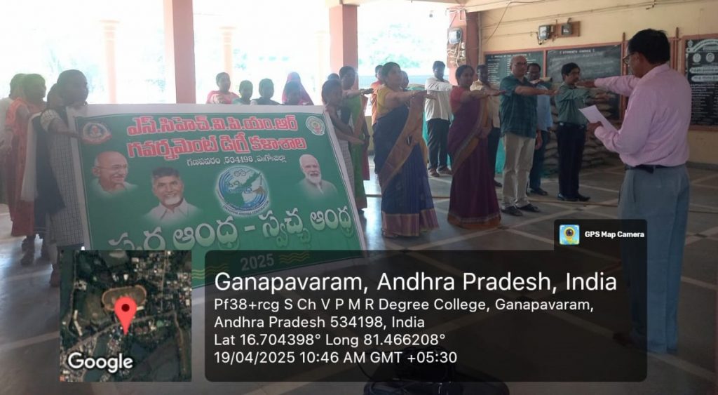 Dr. G. Venkata Rao, Lecturer in Social Work and coordinator of the program, motivated students to take part in environmental preservation activities. A Swachh Andhra Pledge was administered to all participants, reinforcing their commitment to a cleaner and greener Andhra Pradesh.