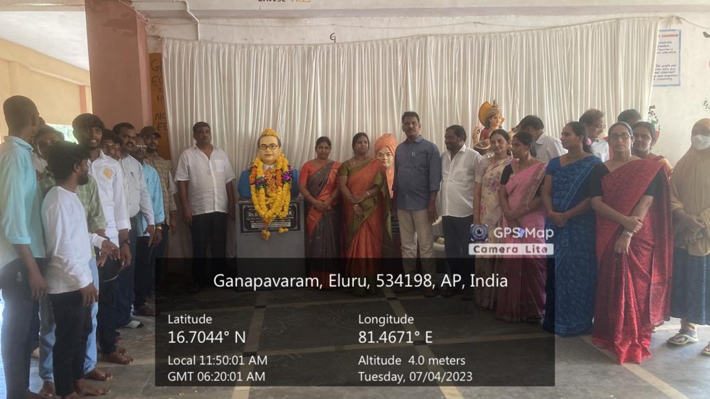The Architect of the Indian Constitution Dr. B.R. Ambedkar’s Statue is unveiled in the college today by Smt. M. Alankaram, Sarpanch, Ganapavaram, and Sri K.V. Srinivas Rao, CPDC Secretary, and Dr. P. Nirmala Kumari, Principal in the presence of all the students and the staff. The statue was arranged by the outgoing batch (2022-23) students.