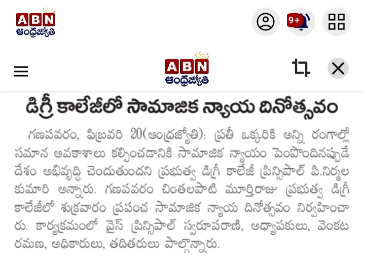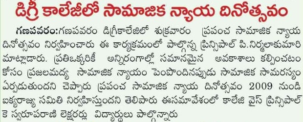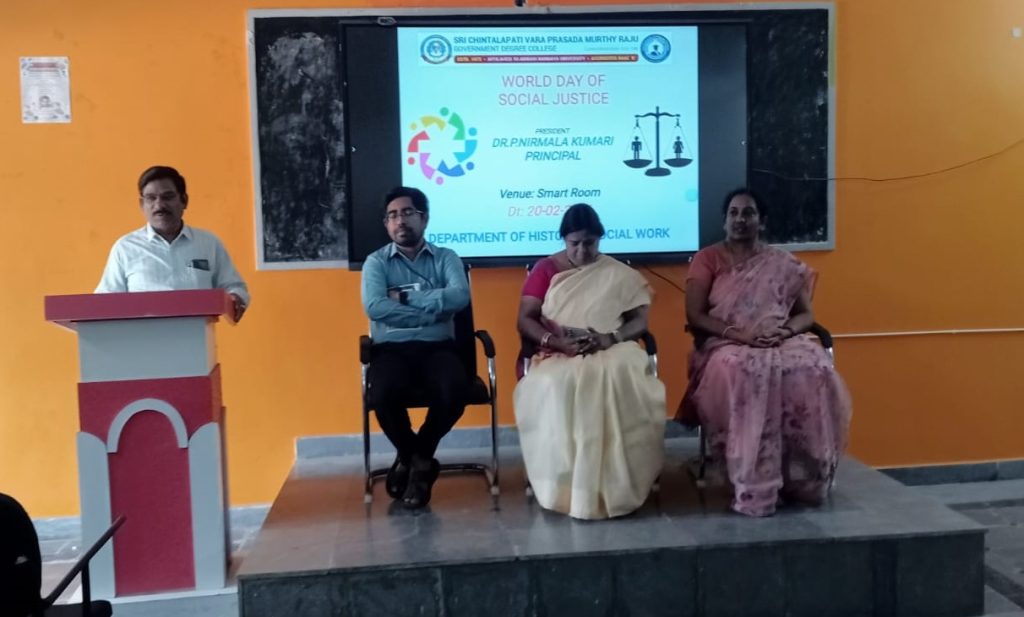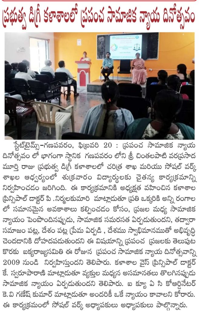 S.Ch.V.P.M.R. Government Degree College, Ganapavaram observed World Social Justice Day with an awareness programme organized by the Departments of History and Social Work.