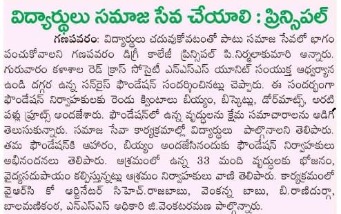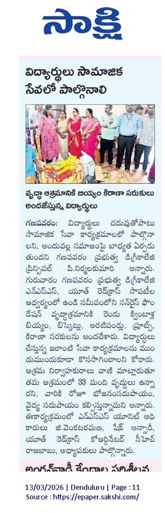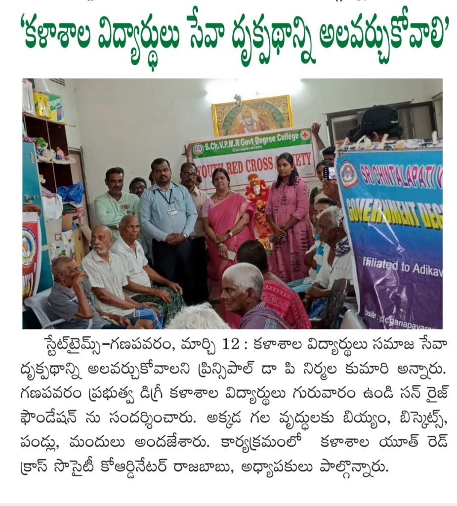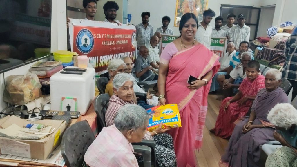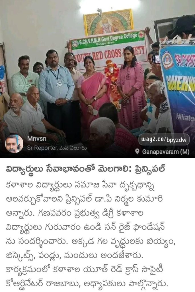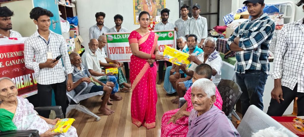 S.Ch.V.P.M.R. Government Degree College, Ganapavaram, organized a meaningful Donation Drive at Sunrise Foundation Old Age Home, Mahadevapatnam (near Undi), reaffirming the institution’s commitment to community engagement and social responsibility.